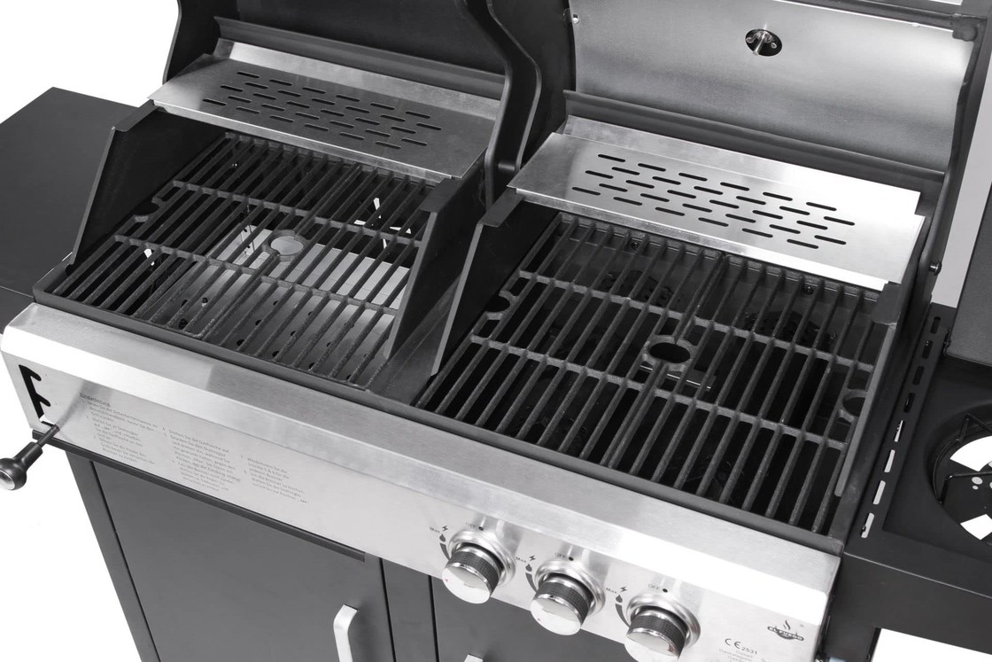 Аксессуары | 4 x железные решетки для приготовления пищи, 1 x раковина для нагрева из нержавеющей стали, 2 x 3 блокирующие колеса, 2 x не блокирующие колеса |